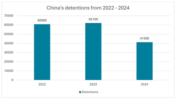 From the latest 3 years (2022 and 2024).[1] This ranks countries by detention activity, although some important ones, notably Mainland China (“China”), are not included.