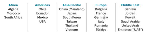 A compilation of the data sources above shows the following countries are frequently listed as having the highest the number of detentions in their regions (due to difficulty in “ranking” for reasons stated above, we list countries alphabetically). We have focused on number of detention cases as a true measure of activity, rather than number or value of articles. Most of the top-ranked countries here have consistently retained their positions, indicating that these are not temporary peaks in activity.